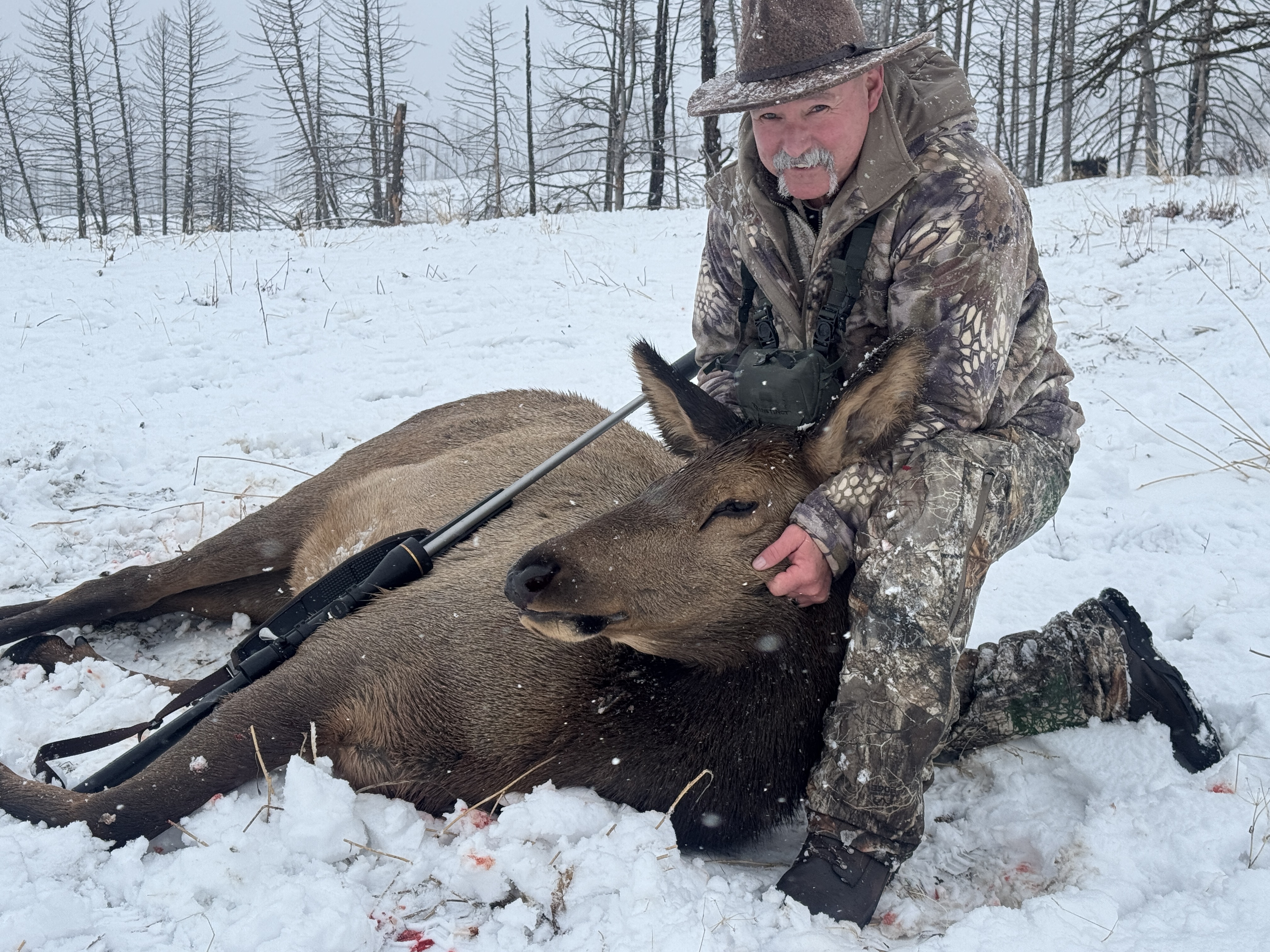 Got after it last week and was able to fill three elk tags, one for myself and two for friends. I have had many successes on this same hunt in the past but this year was different. It was a tough hunt with little to no snow and rain most of the week. These guys still put in the miles, never complained, and we had a blast. This was my first muzzleloader hunt as well in a unit I have only archery hunted in and the open terrain made it difficult. Thankful for the memories, shared stories and experiences.